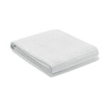 Lekki bawełniany koc o stukturze waflowej i gramaturze 300 gr/m². Zapakowany w białe pudełko.